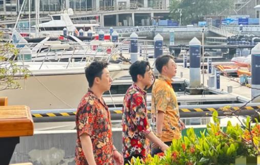 路透图里,他们穿着花衬衫,一下就有了夏天的感觉。陈小春的出现真是个小惊喜,我本来听说他在上海录年会特辑呢,但因为某个顶流艺人的事儿给搁置了。这次他穿着鲜艳的红花衬衫,戴着黑帽,沙滩装都穿出了古惑仔的风采,工作人员都直呼“帅气炸裂”。
